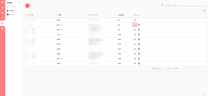 2. 二段階認証を強制的にオンにしたいユーザーの編集ボタンをクリックしてください。