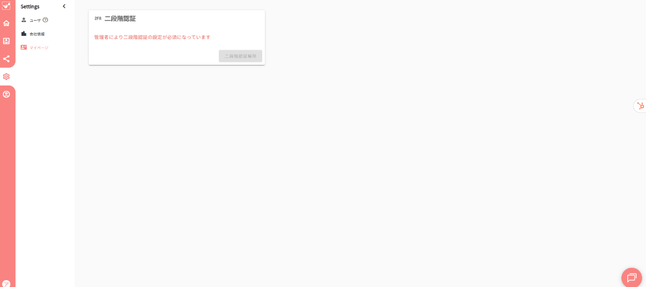 4. 「二段階認証解除」と表示が変わっていれば設定完了です。次回ログイン時より二段階認証が必要となります。
