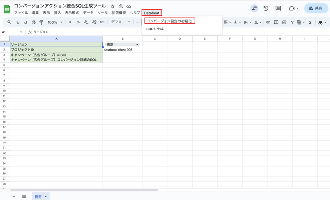 6. もう一度「コンバージョン設定の初期化」をクリックいただき、「コンバージョン設定」シートが生成されれば、「設定」シートの設定は完了です。