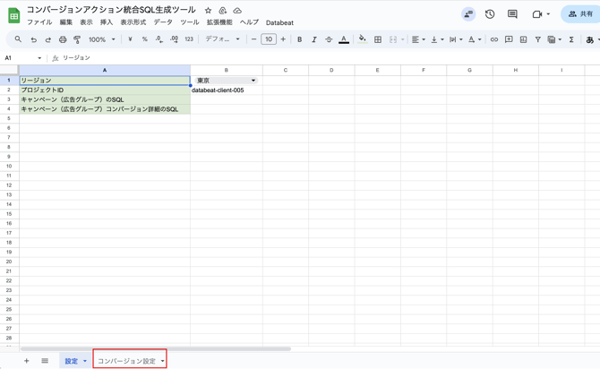 【STEP3】ツールの設定(「コンバージョン設定」シート)とSQLの生成