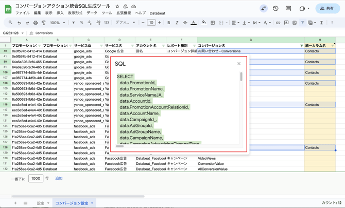 コンバージョンアクション統合SQL生成ツールを使ってレポートを作成する方法
