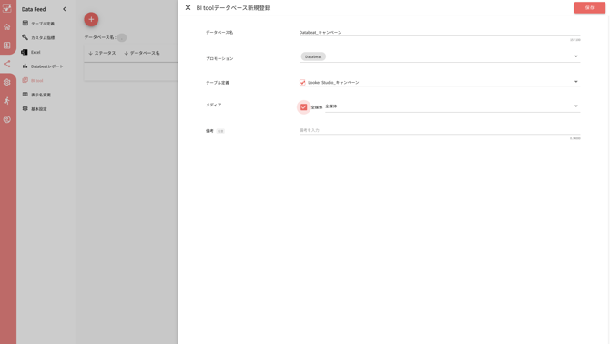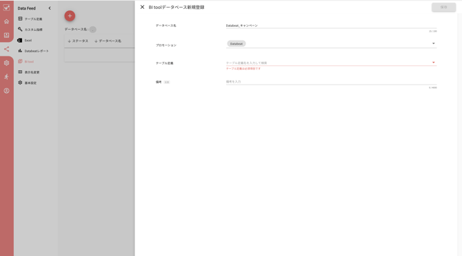 データベース名は使用したテーブル定義に応じて、「{プロモーション名}_キャンペーン」もしくは「{プロモーション名}_コンバージョン詳細」としていただくとこのあとの作業がスムーズかと存じます。