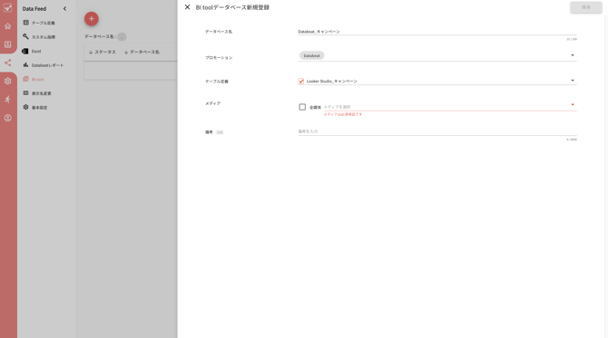 1. 「Data Feed」>「BI tool」をクリックしてください。