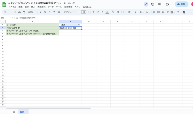 3. B2セルに貴社のGCPのプロジェクトIDを入力してください。